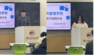 大会首先由何小杨宣布校级和院级优秀实习生名单,随后由带队赴新疆喀什地区集中实习的指导教师陈昌山总结带队实习工作经验和对同学们实践学习的建议。他强调了实习不仅是一线工作经验的积累,更是对所学知识的融会贯通;既是同学们个人知识能力素养形象的展现,还是公司和公司人才培养质量的生动名片,他还传达了实习单位对同学们实习表现的高度好评。接着,由四位优秀实习生代表分别发言,分享各自实习经验和心得体会。他们一致认为,本次实习帮助他们更深入地走进了基层,更深刻地了解了法治政府、法治社会建设的实际需求和问题,既是一场对自己理论与实践结合能力的考验和锻炼,更是一场未来职业生涯工作的精彩预演。