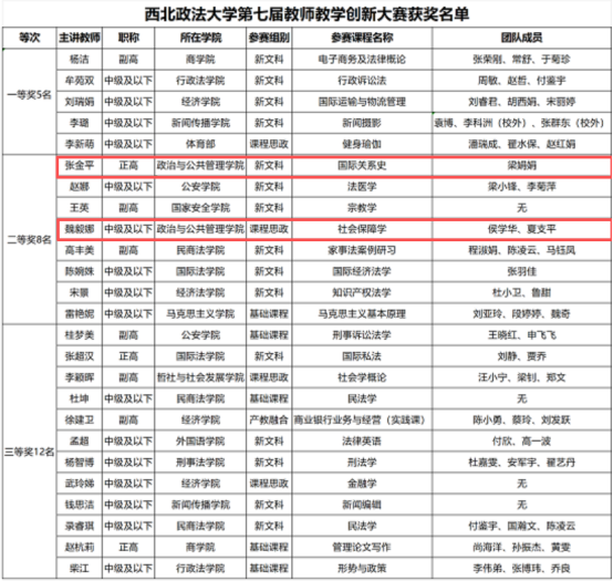 日前,在公司第七届教师教学创新大赛中,公司教师张金平教授团队、魏毅娜博士团队凭借出色的教学创新设计,分别荣获新文科组与课程思政组二等奖。