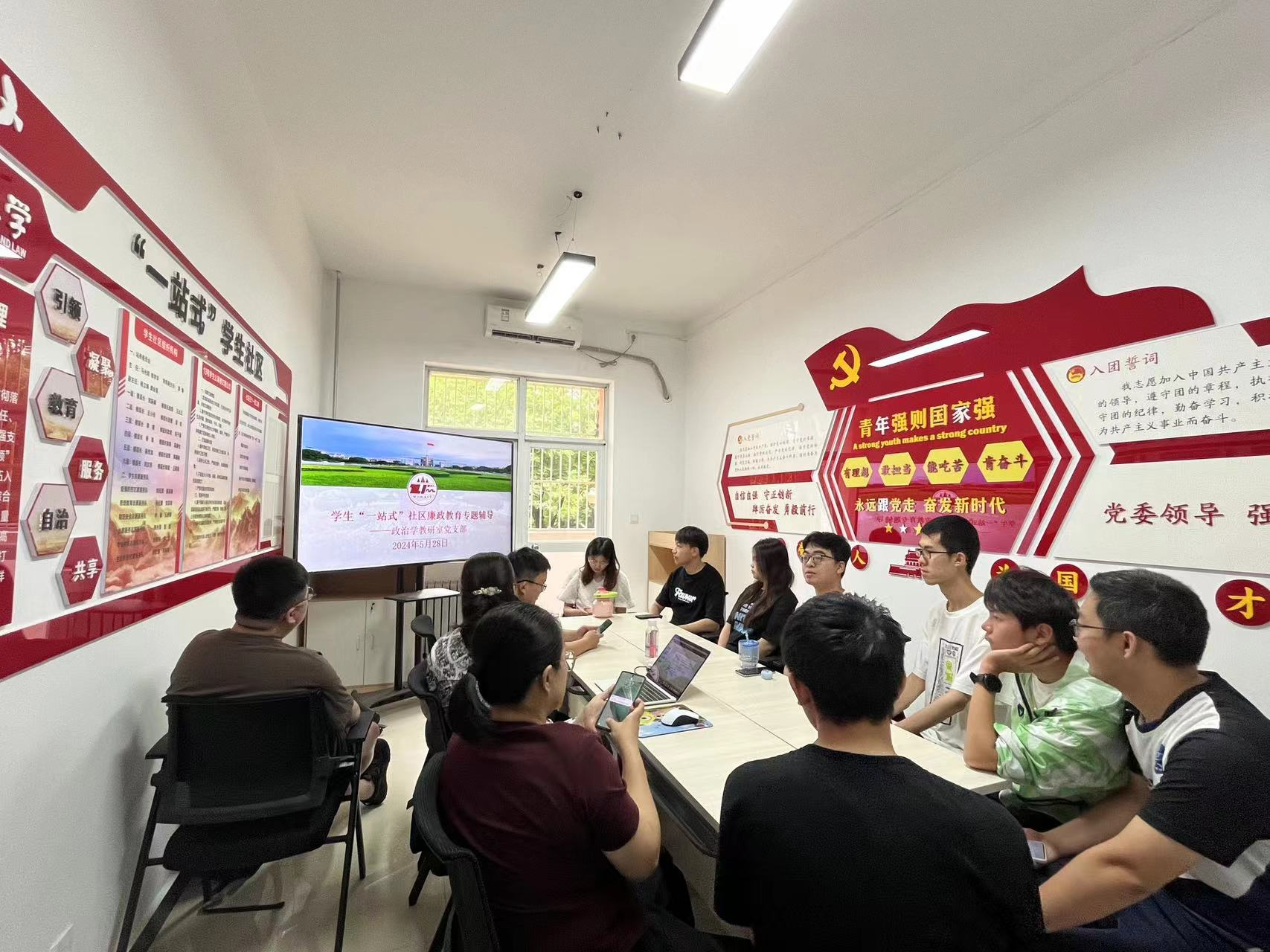 5月28日,公司政治学教研室党支部在长安校区员工“一站式”社区开展廉政教育专题辅导活动,活动由政治学教研室党支部书记刘文沛主持。